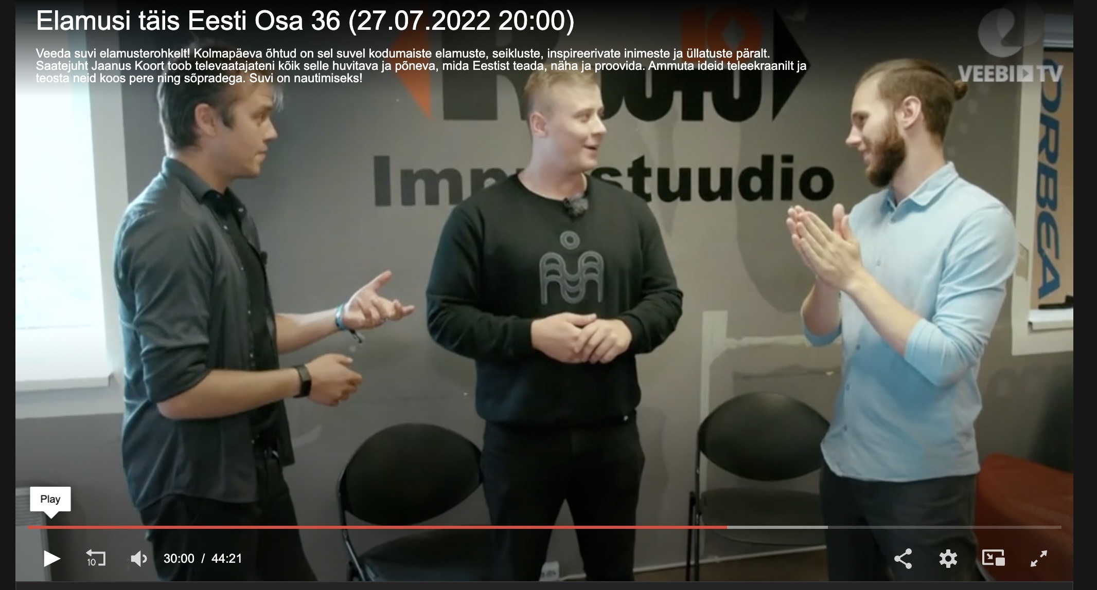 Improteater Impeerium tähistab kümnendat hooaega, hiljuti naasis trupp kahenädalaselt väljasõidult Kanada ja Ameerika Ühendriikidesse, kus osaleti komöödia teatrifestivalil FunniEST ning anti etendusi väliseesti kogukondadele Floridas ja New Yorgis. Stuudios on näitlejad Tarvo Krall ja Rauno Kaibiainen. loe edasi